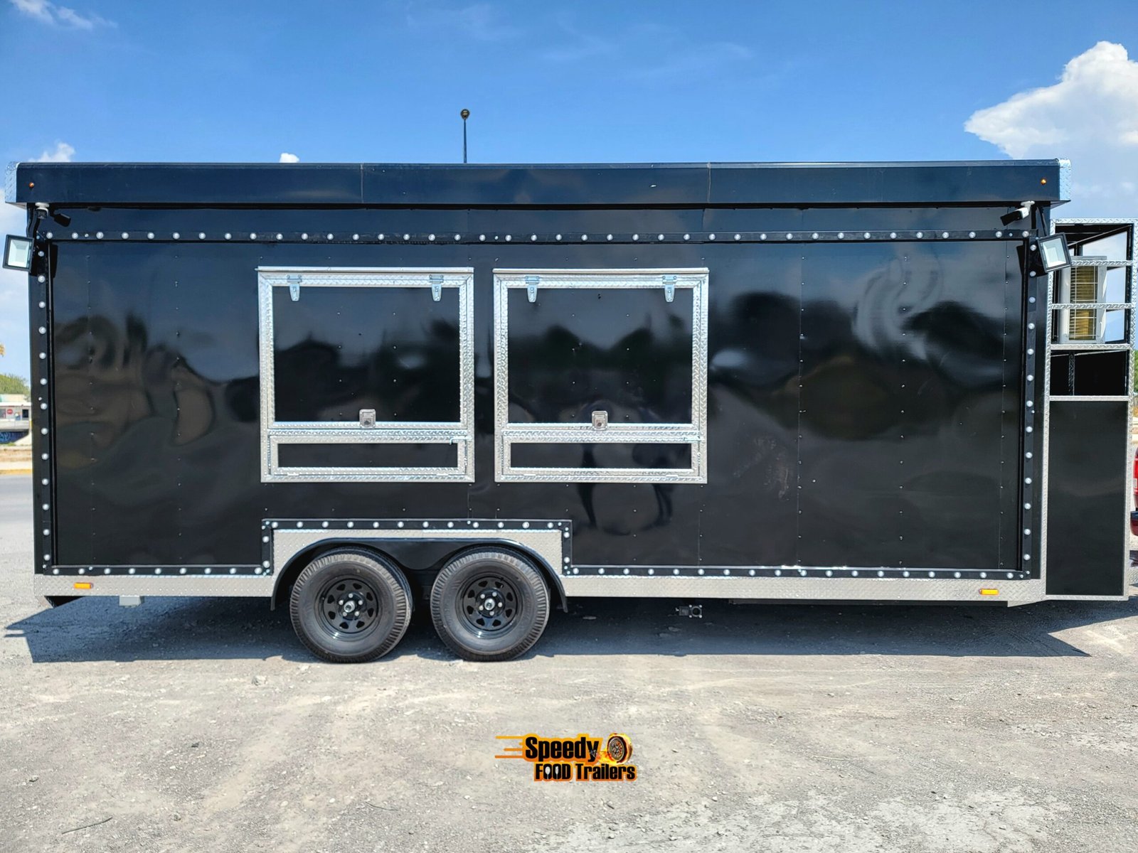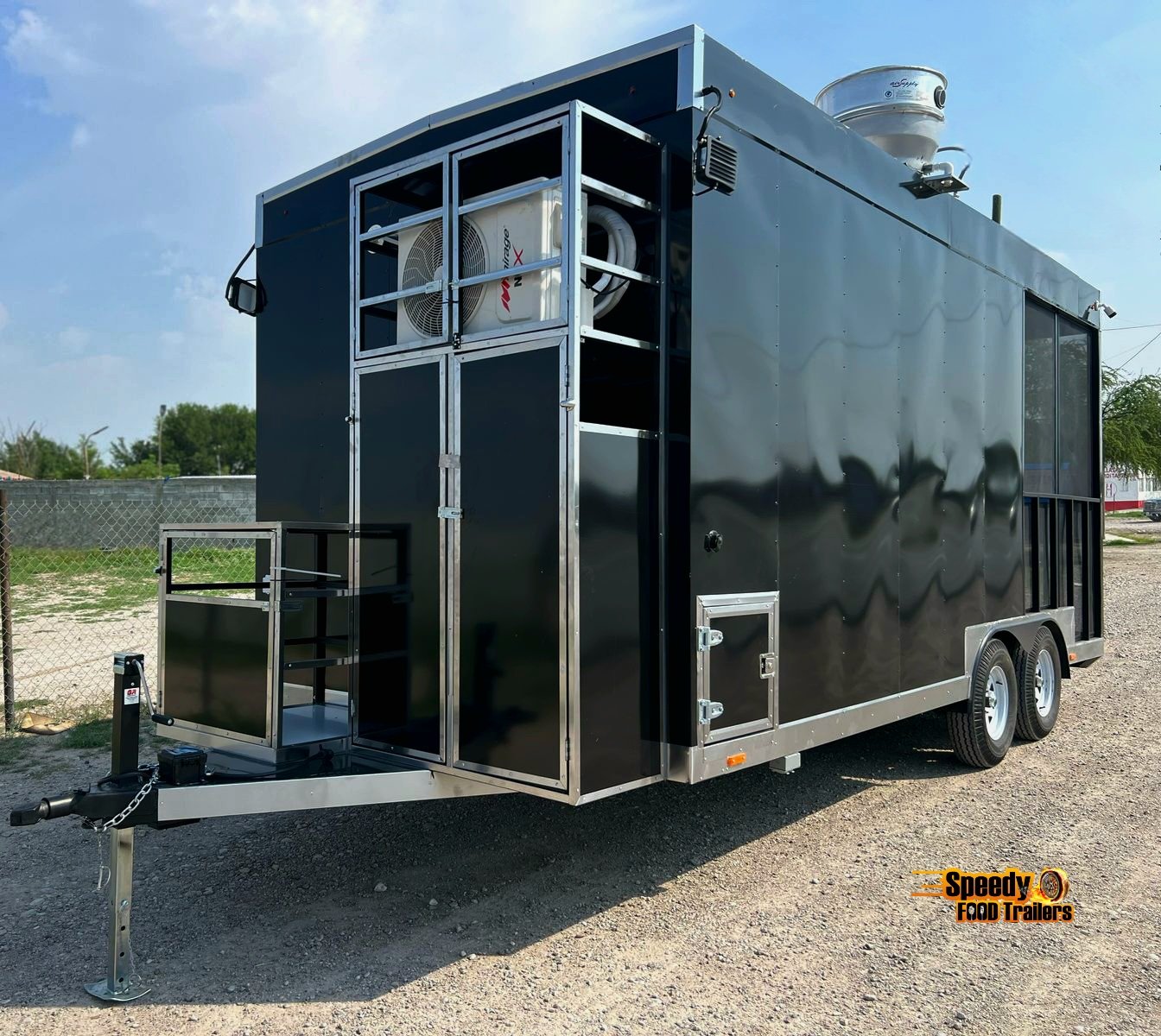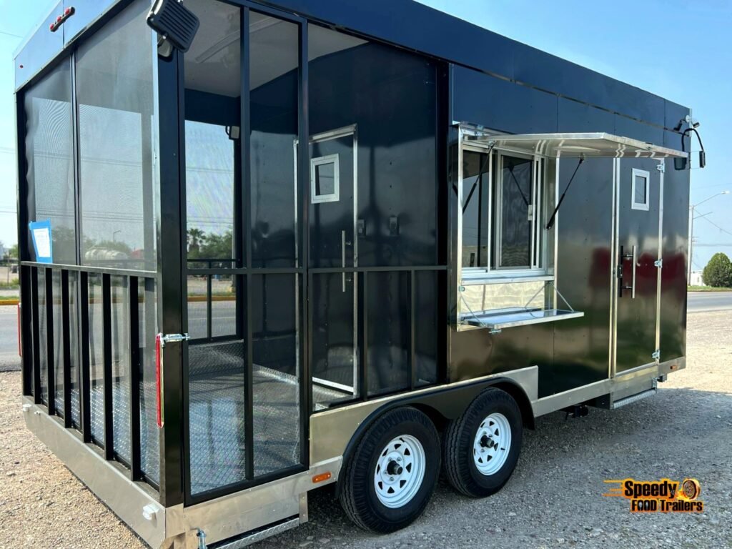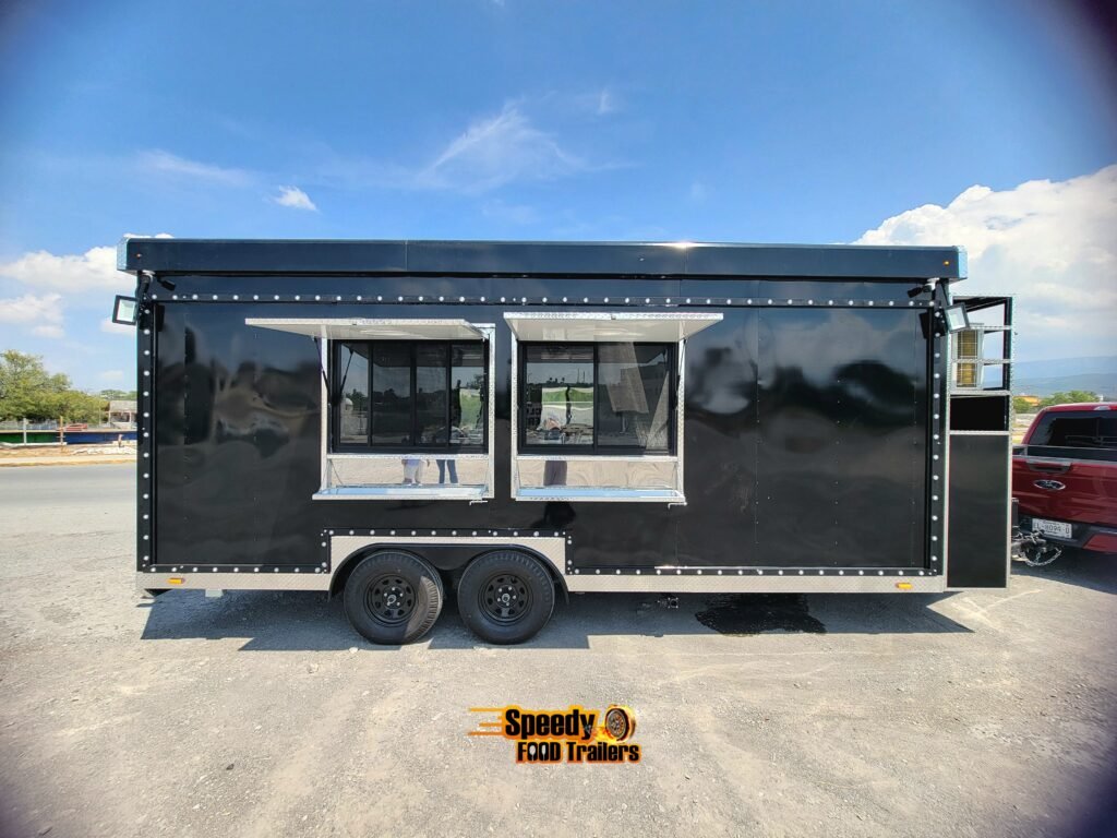 This 8.5x20 ft black trailer is designed like our show models, fully equipped and ready for action. It includes a 220 V power connection to support a convection oven — perfect for high-performance cooking.