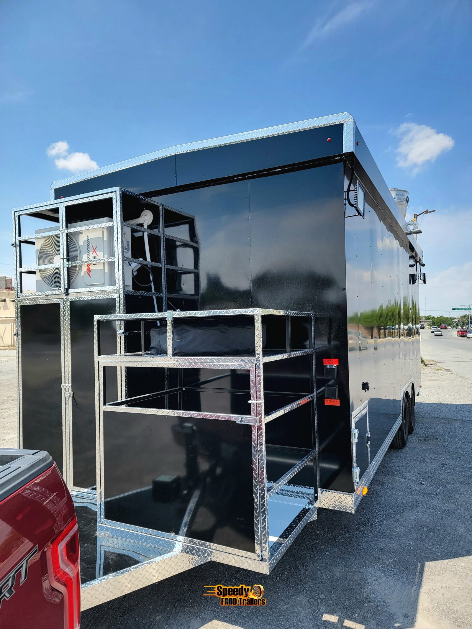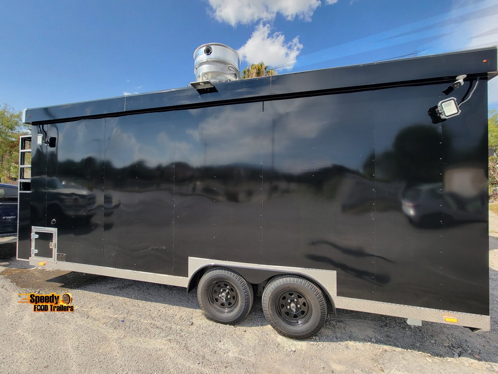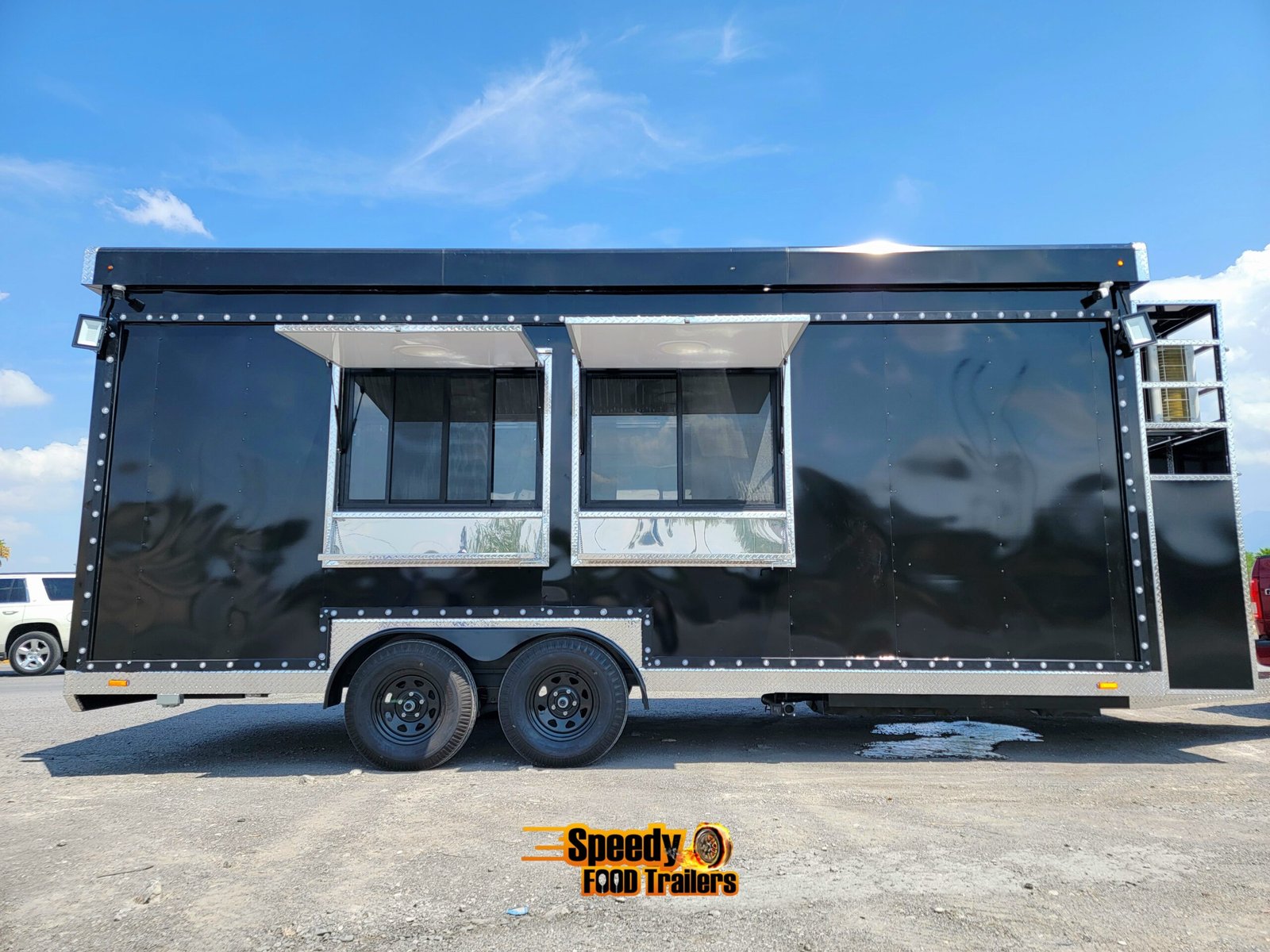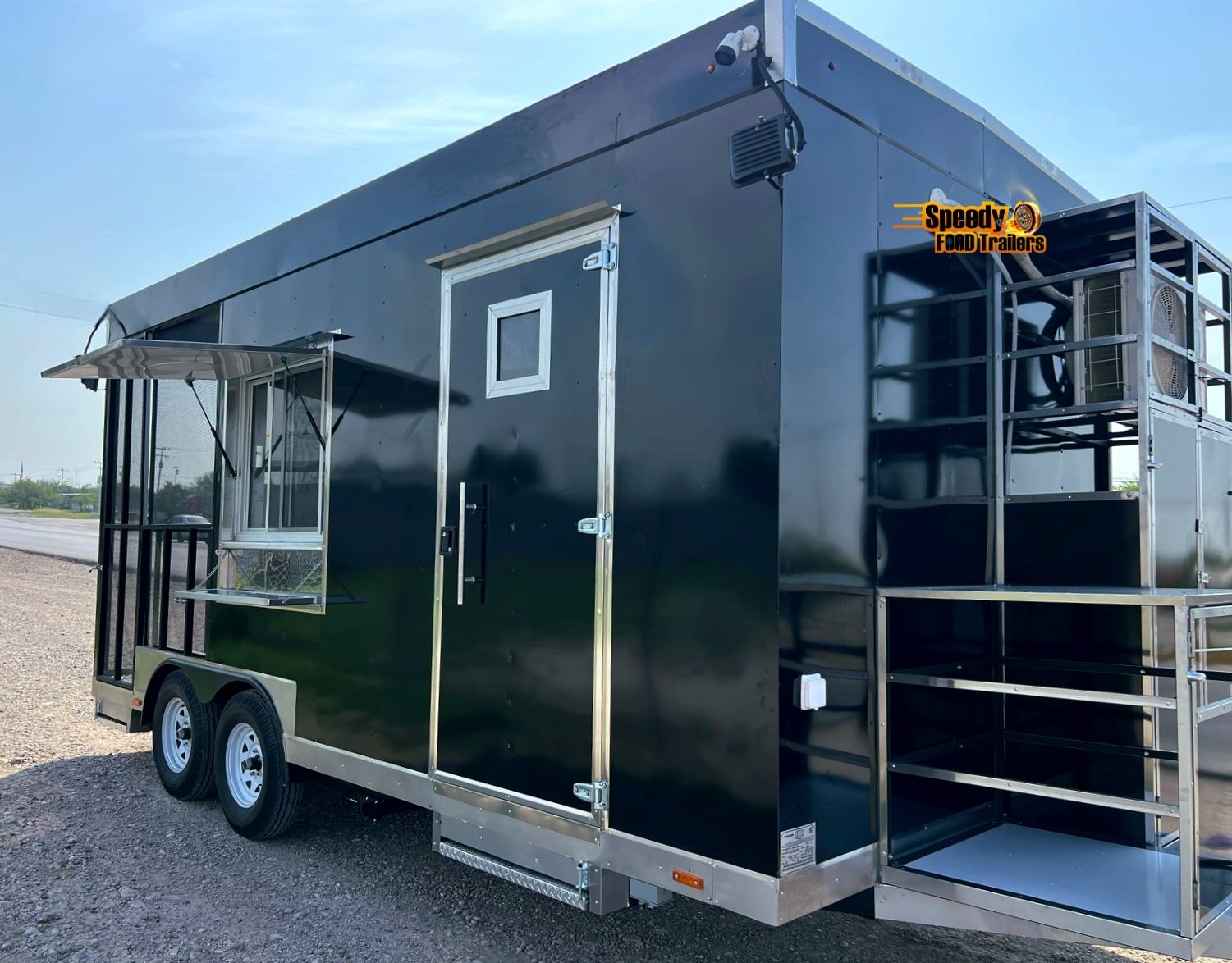 This 8.5x20 ft black trailer is designed like our show models, fully equipped and ready for action. It includes a 220 V power connection to support a convection oven — perfect for high-performance cooking.