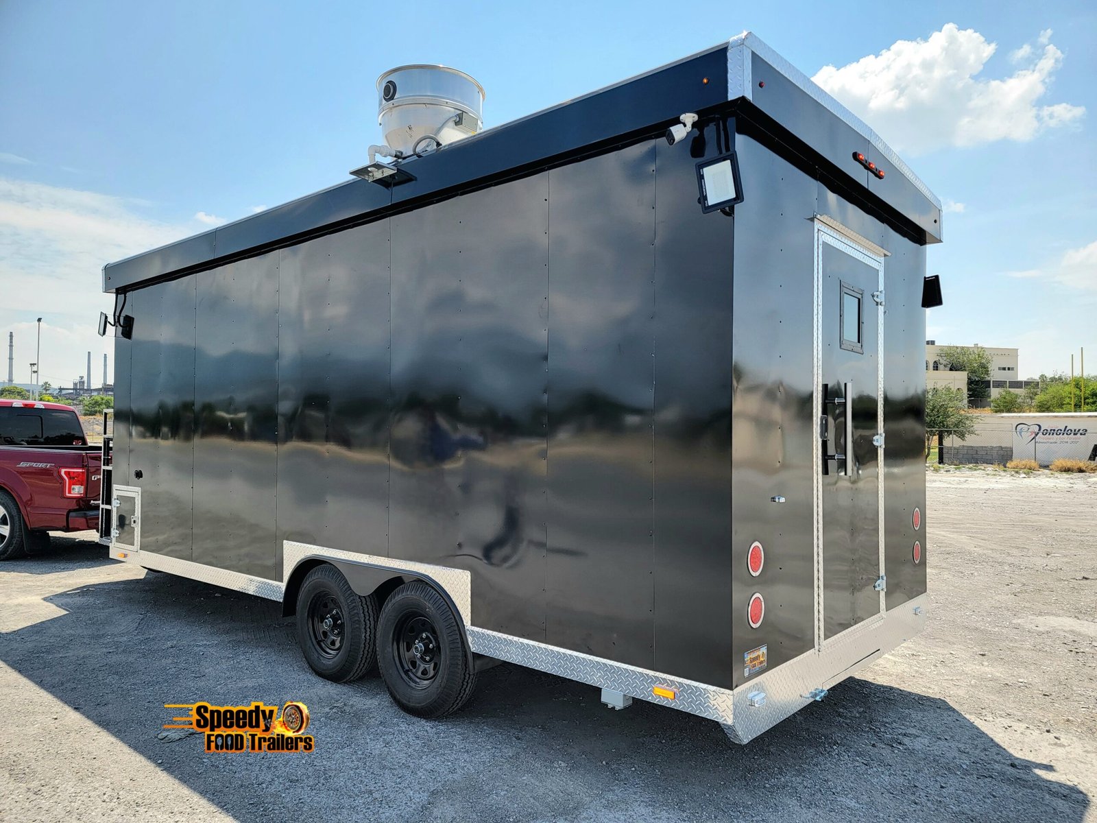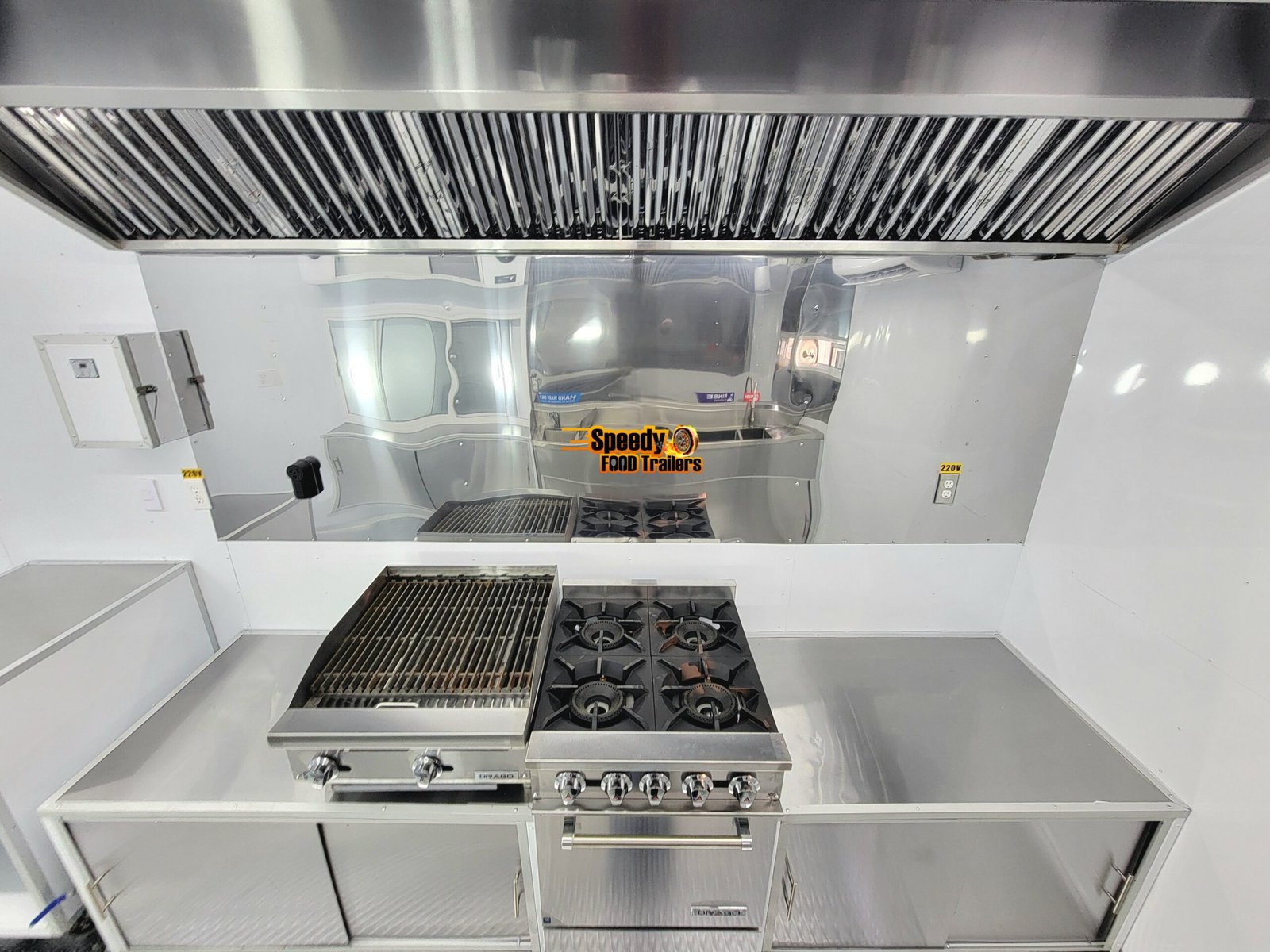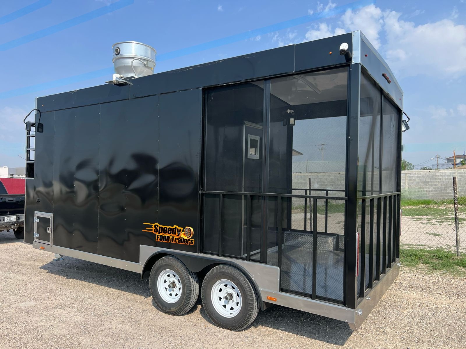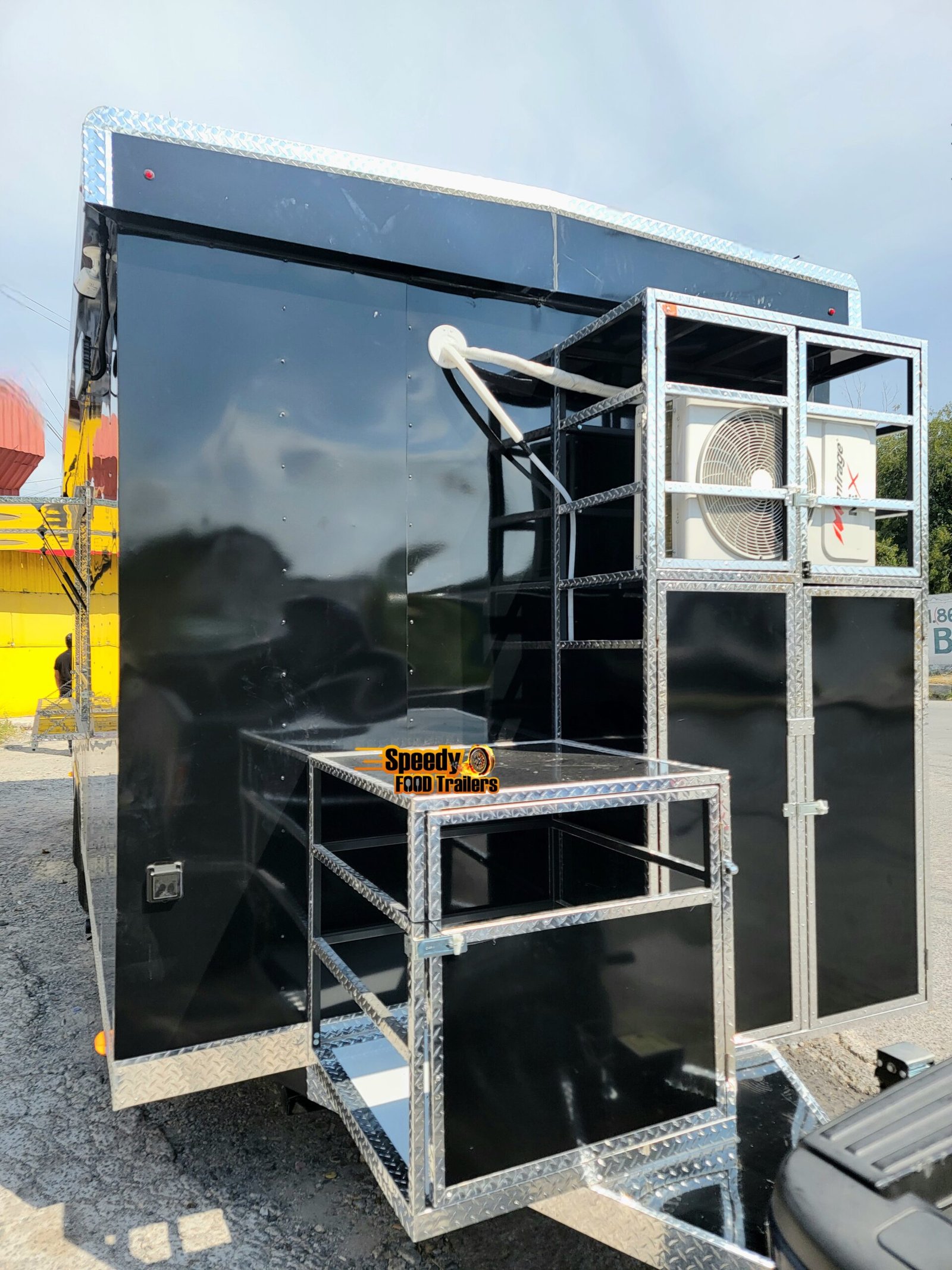 This 8.5x20 ft black trailer is designed like our show models, fully equipped and ready for action. It includes a 220 V power connection to support a convection oven — perfect for high-performance cooking.