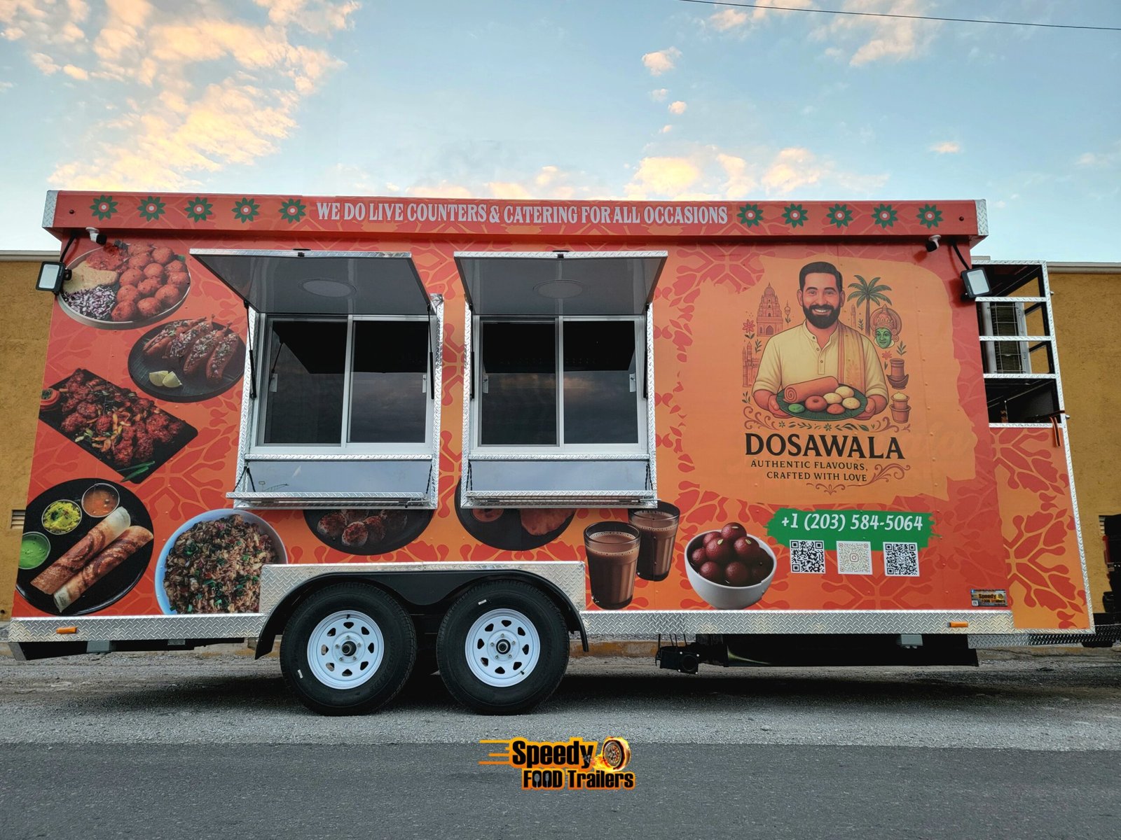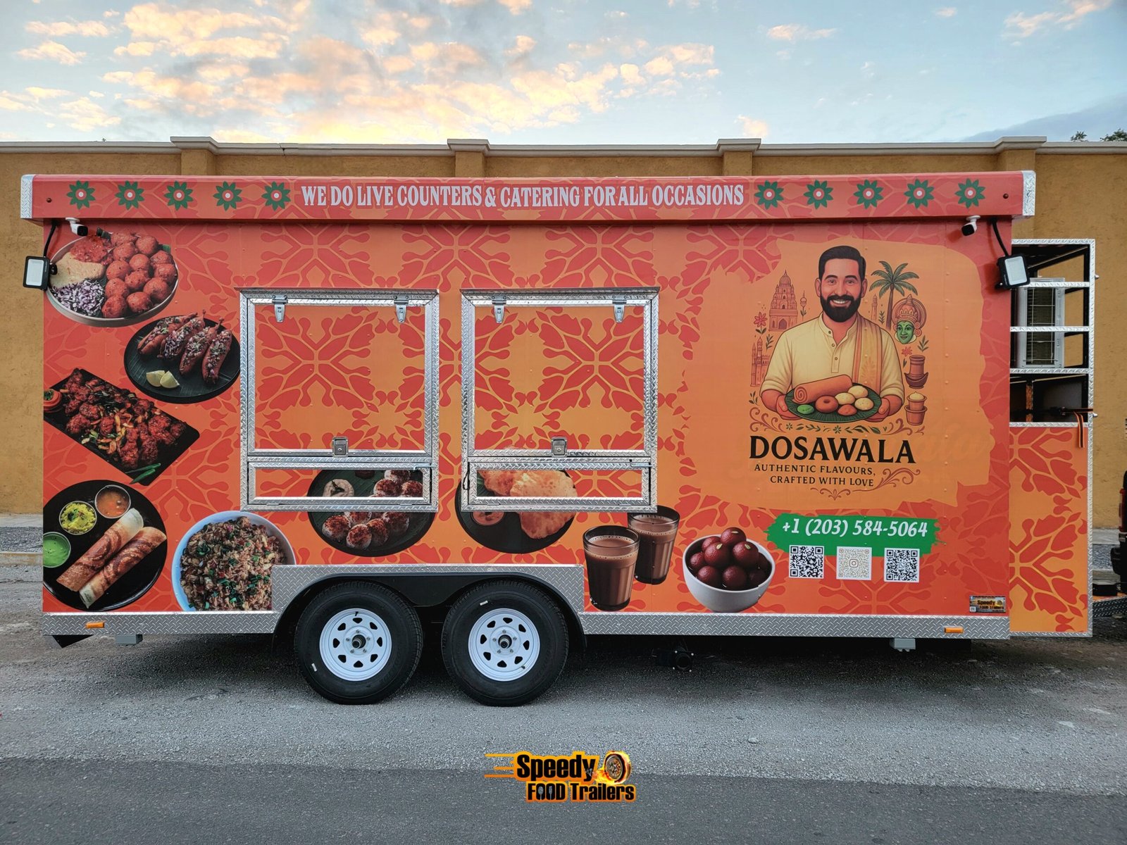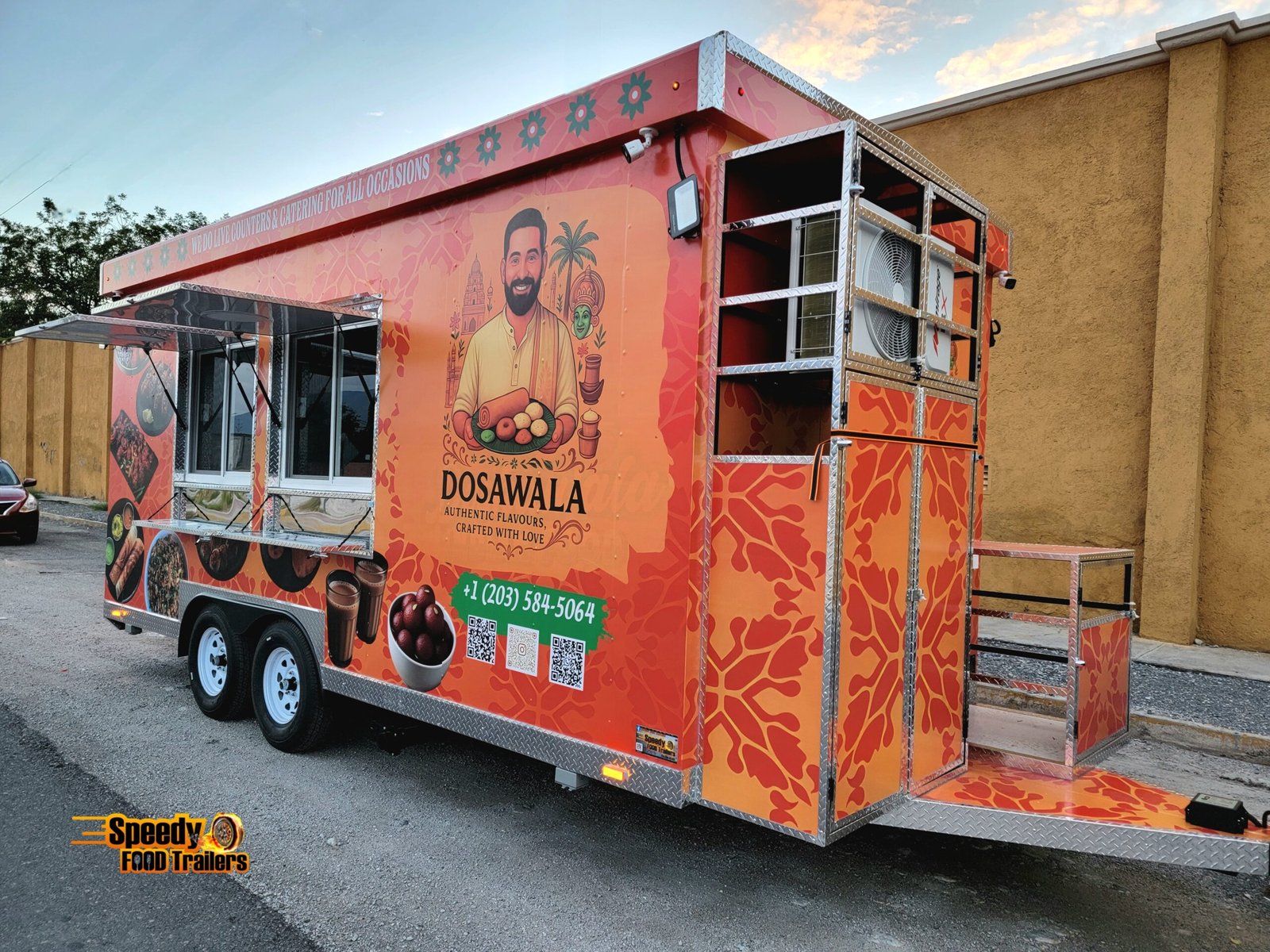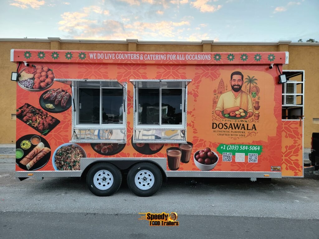 This 8.5x18 ft food trailer was custom built for DOSAWALA, bringing delicious Indian cuisine to caterings and special events across Connecticut. Designed for efficiency, mobility, and style — perfect for serving unforgettable flavors anywhere.