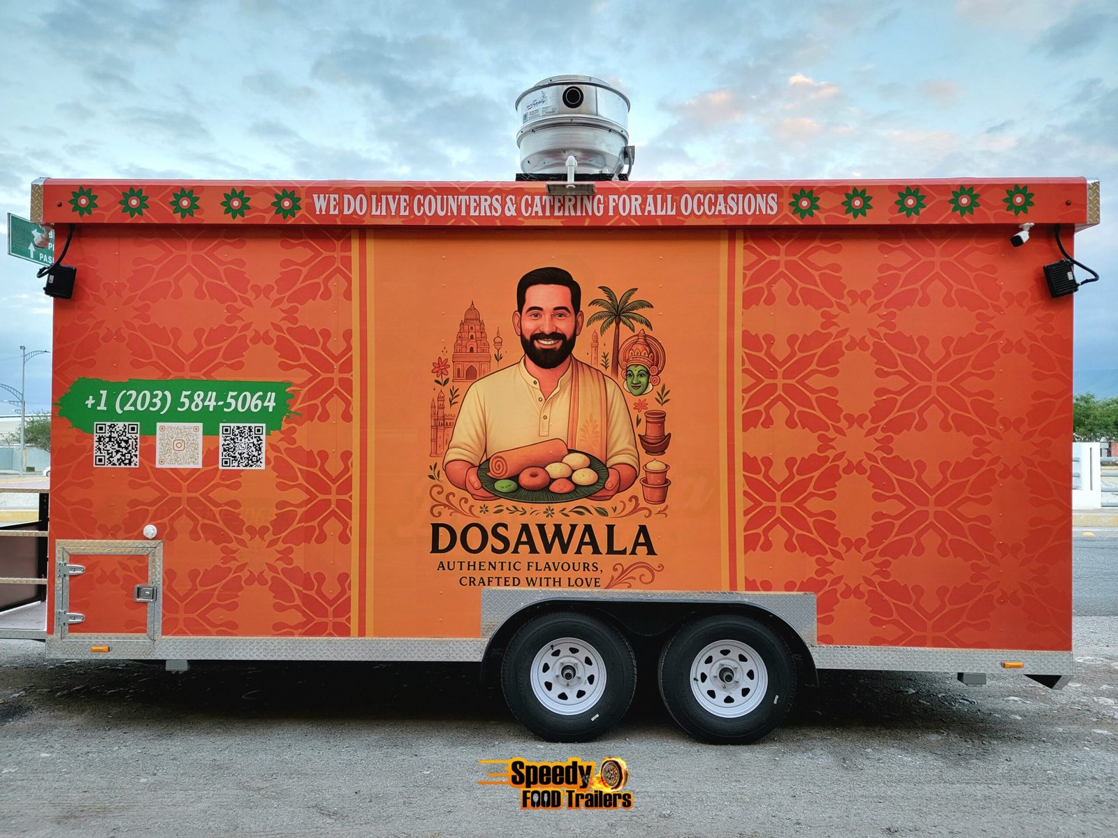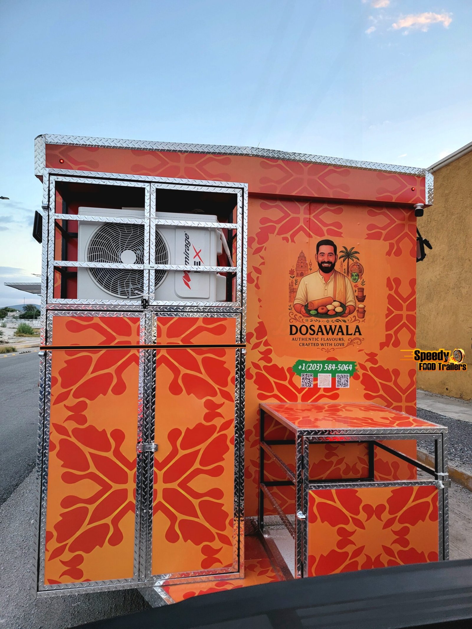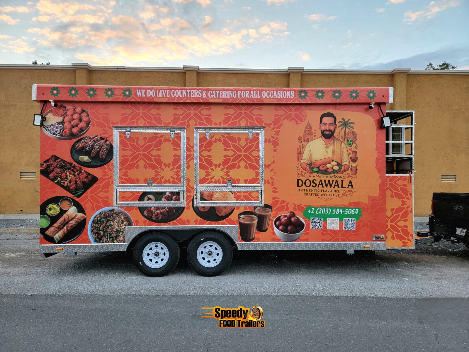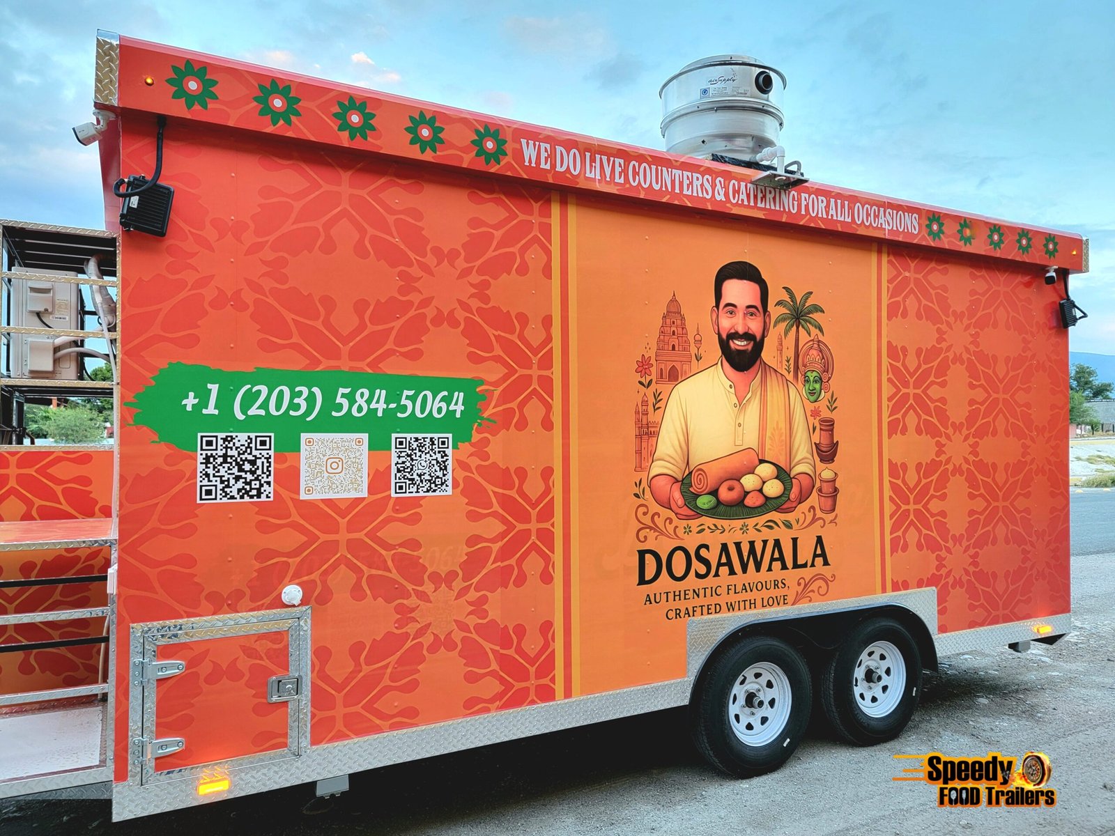 This 8.5x18 ft food trailer was custom built for DOSAWALA, bringing delicious Indian cuisine to caterings and special events across Connecticut. Designed for efficiency, mobility, and style — perfect for serving unforgettable flavors anywhere.