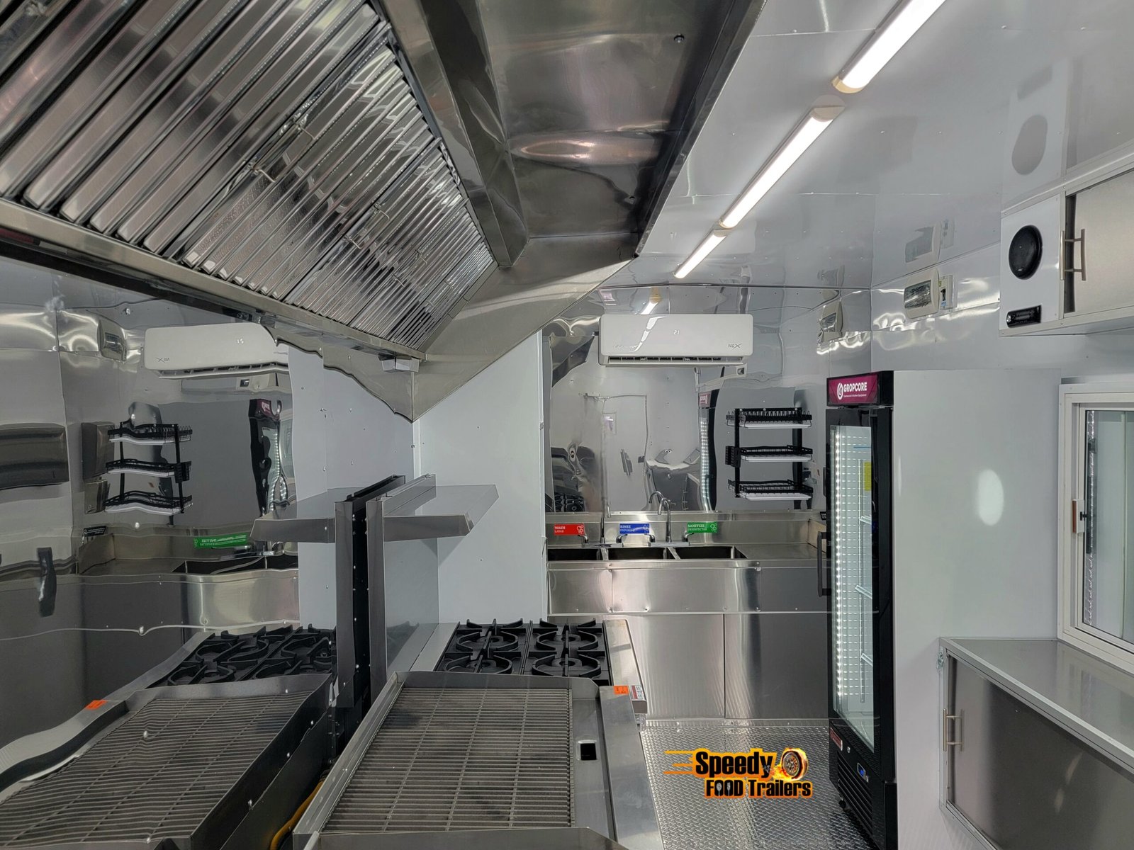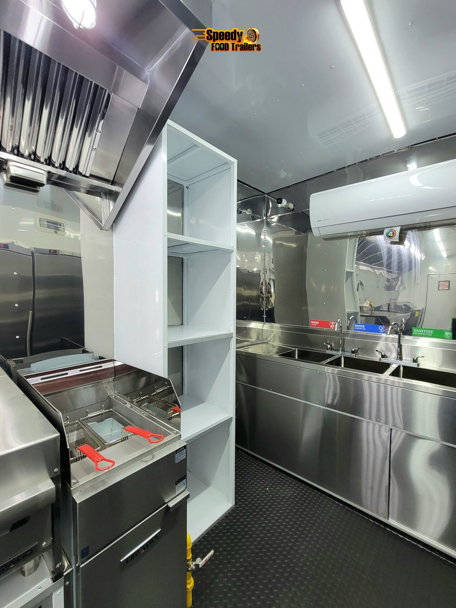 Designed for a specialized culinary concept, the 8.5x30 trailer for Spice Lab combines spaciousness and organization within a space fully customized to the client’s preferences. Each configuration was tailored to facilitate the efficient and orderly preparation of authentic Indian cuisine.