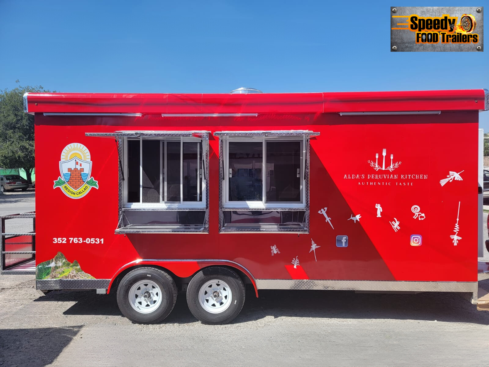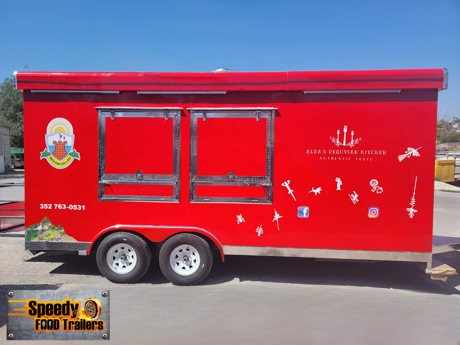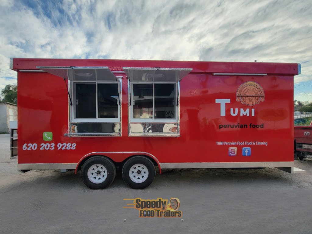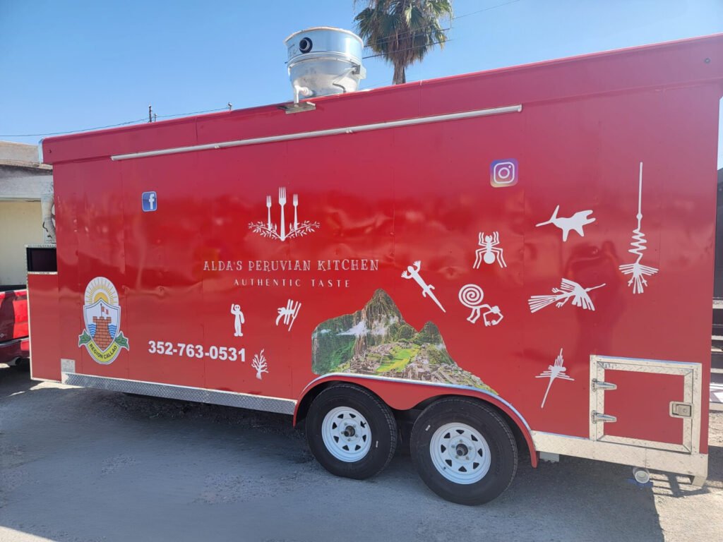 ALDA’S PERUVIAN KITCHEN is an 8 x 18 ft trailer designed to offer authentic Peruvian food in a practical and functional mobile format. Its interior is organized with dedicated areas for preparation, cooking, and service, allowing for an efficient workflow and fast customer service. With an attractive and well-utilized design, it is ideal for operating at events, fairs, or different sales locations, bringing the traditional flavors of Peru directly to the public.