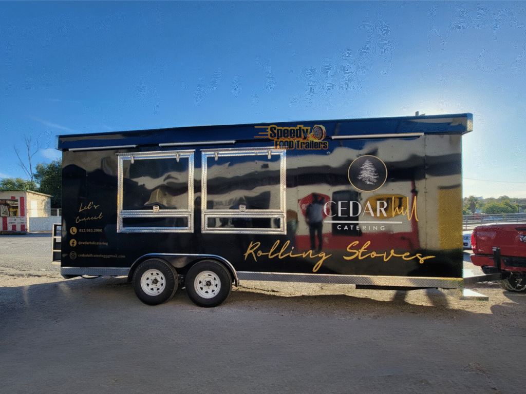 Compact, fully equipped, and functional, Rajan Patel’s 8 x 22 ft trailer offers high-quality mobile cooking in Texas, perfect for catering and events where every dish reflects freshness and care.