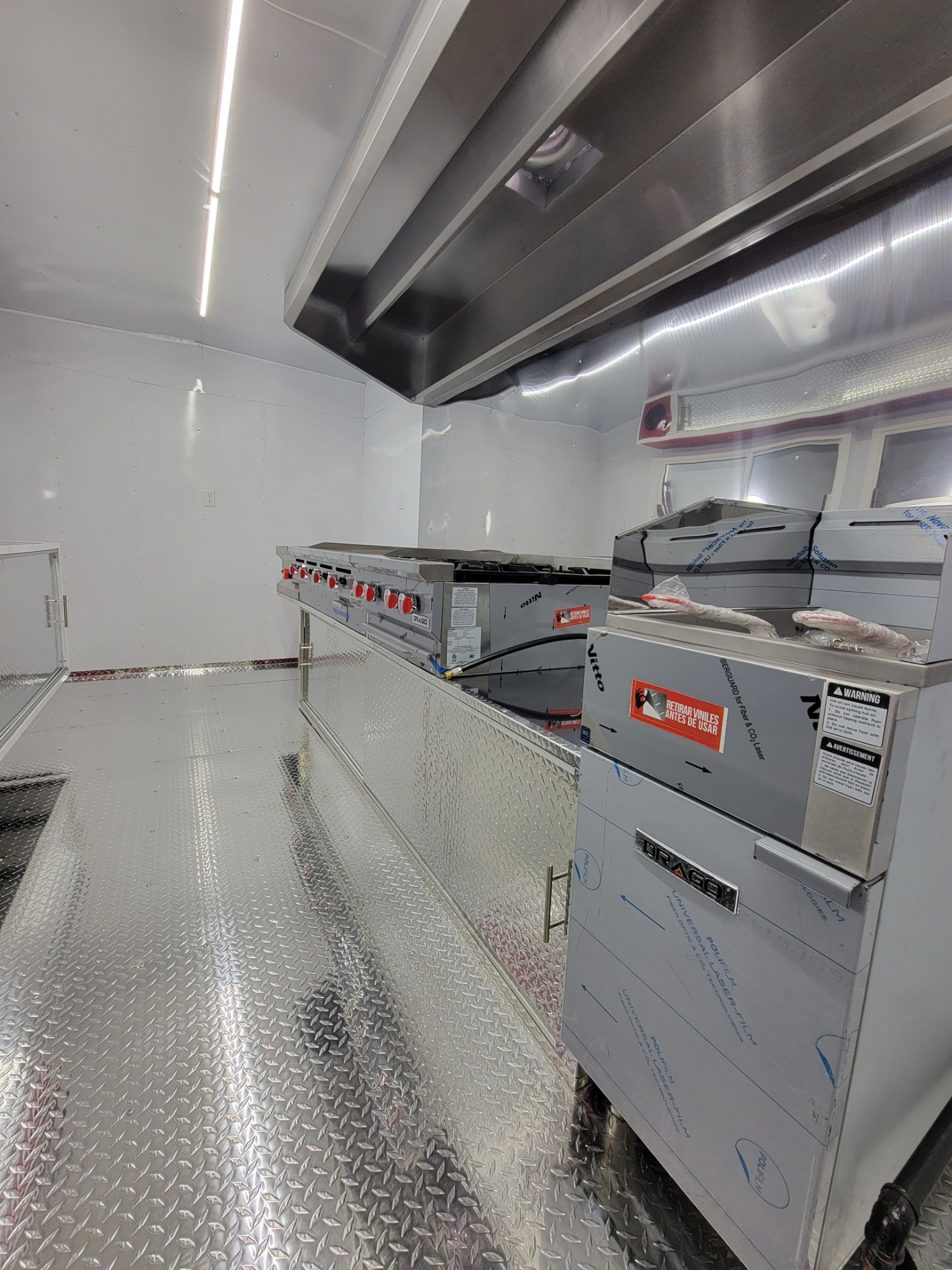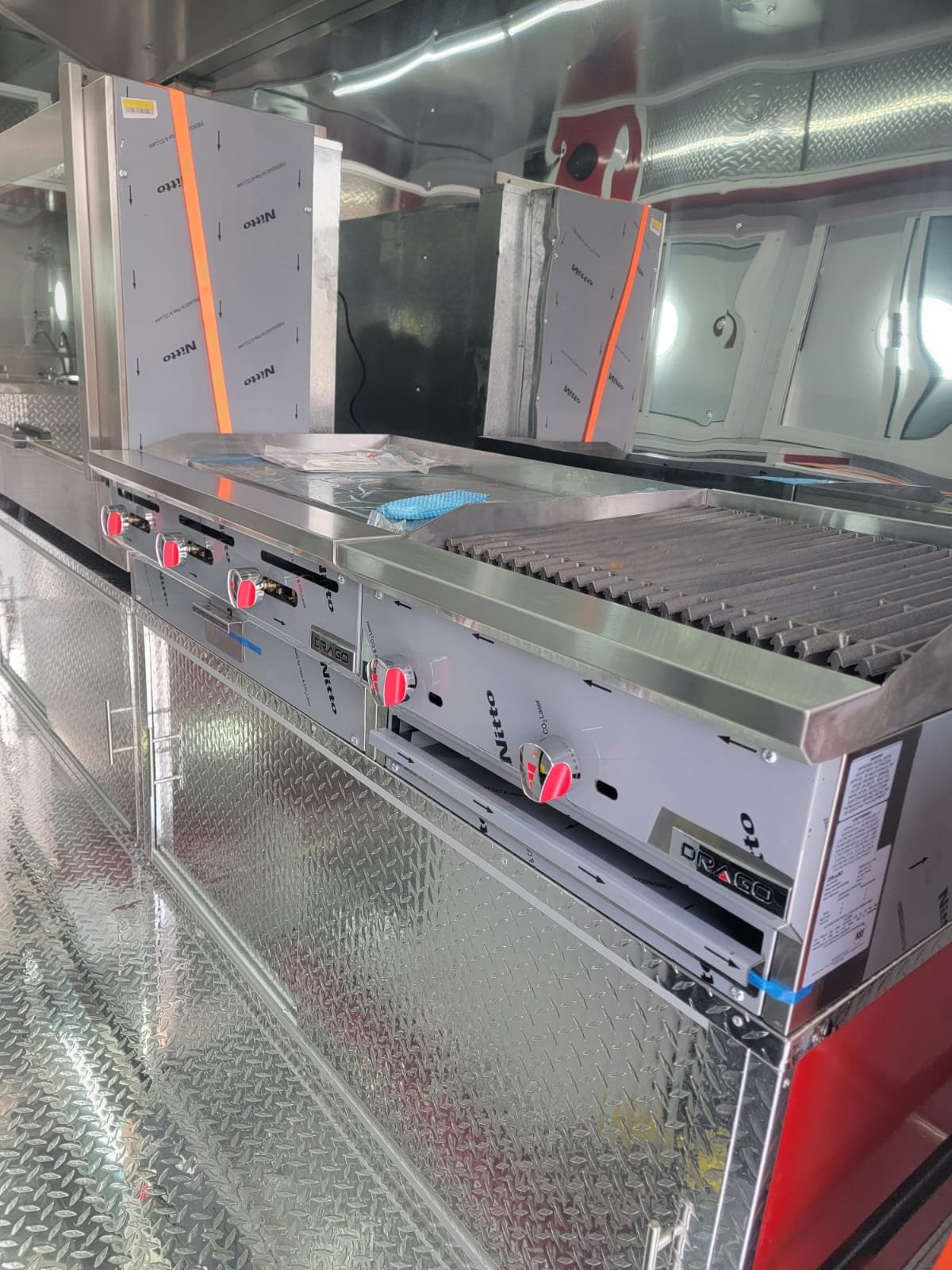 For Gabino, in Pasadena, an 8.5 x 22 ft trailer was designed to combine space, functionality, and comfort in every work area. Every detail was created to make the most of the space and turn this mobile kitchen into an efficient place ready to prepare and serve great flavors.