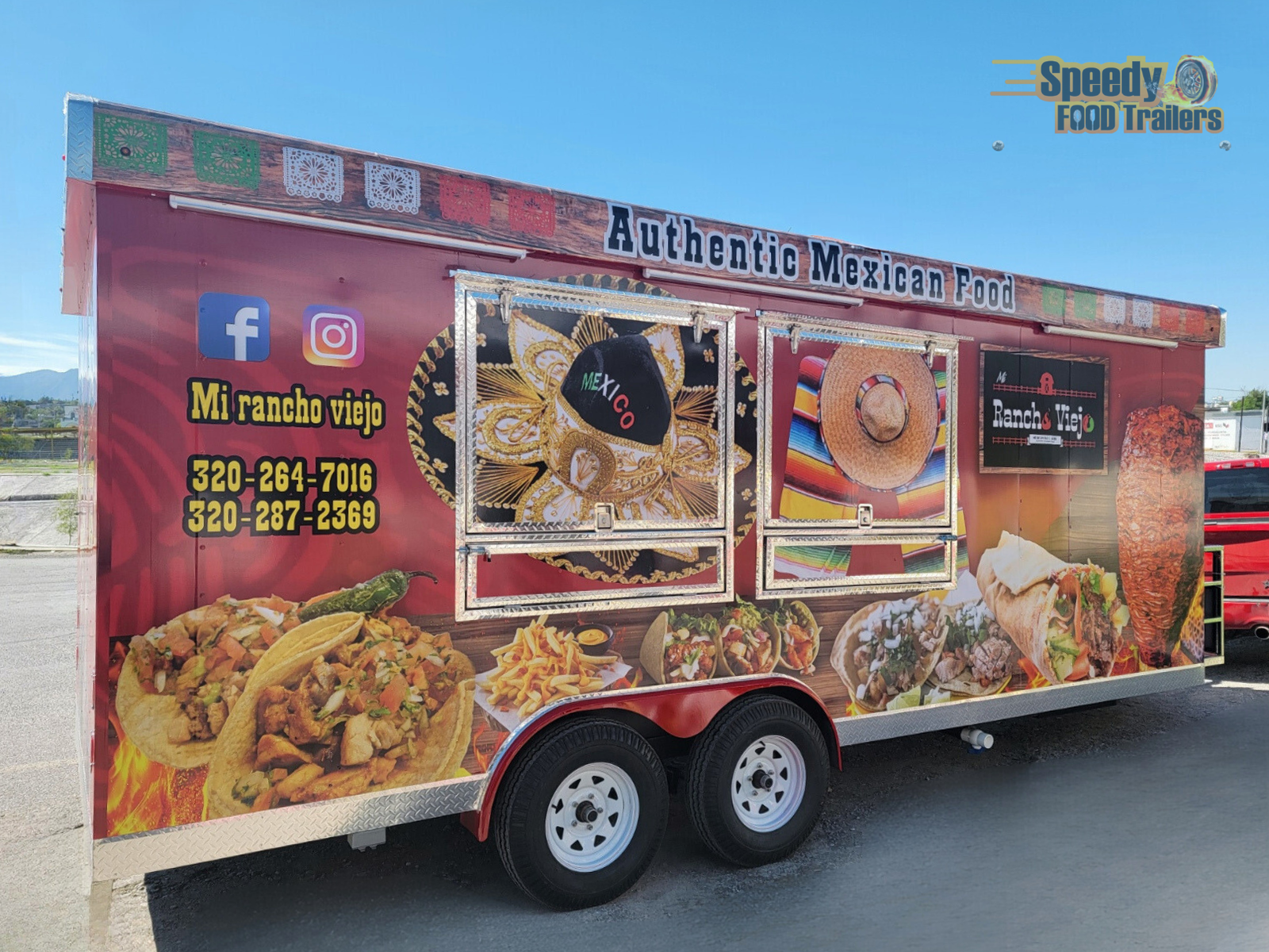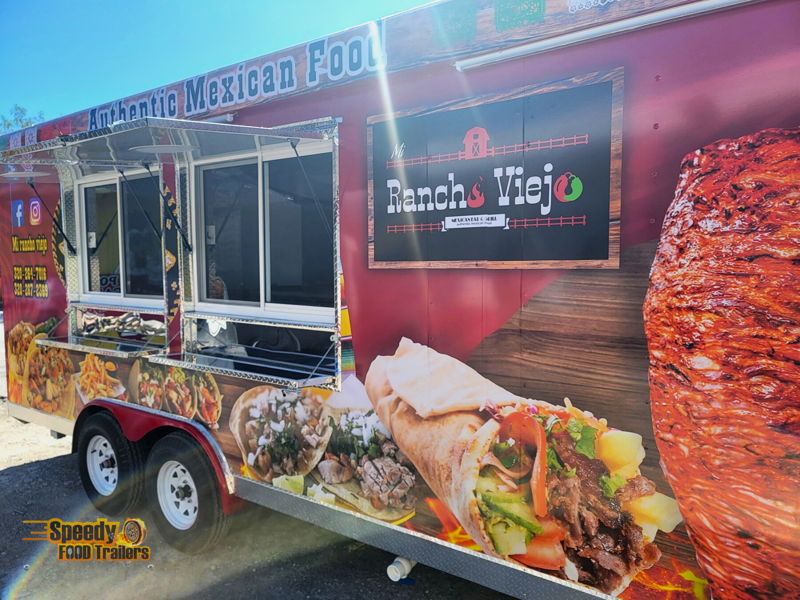 This 8 x 20 ft trailer turns any place in Minnesota into a small corner of Mexico. MI RANCHO VIEJO / AUTHENTIC MEXICAN FOOD offers authentic and fresh food, perfect for fairs, events, and gatherings where great flavor is enjoyed instantly.