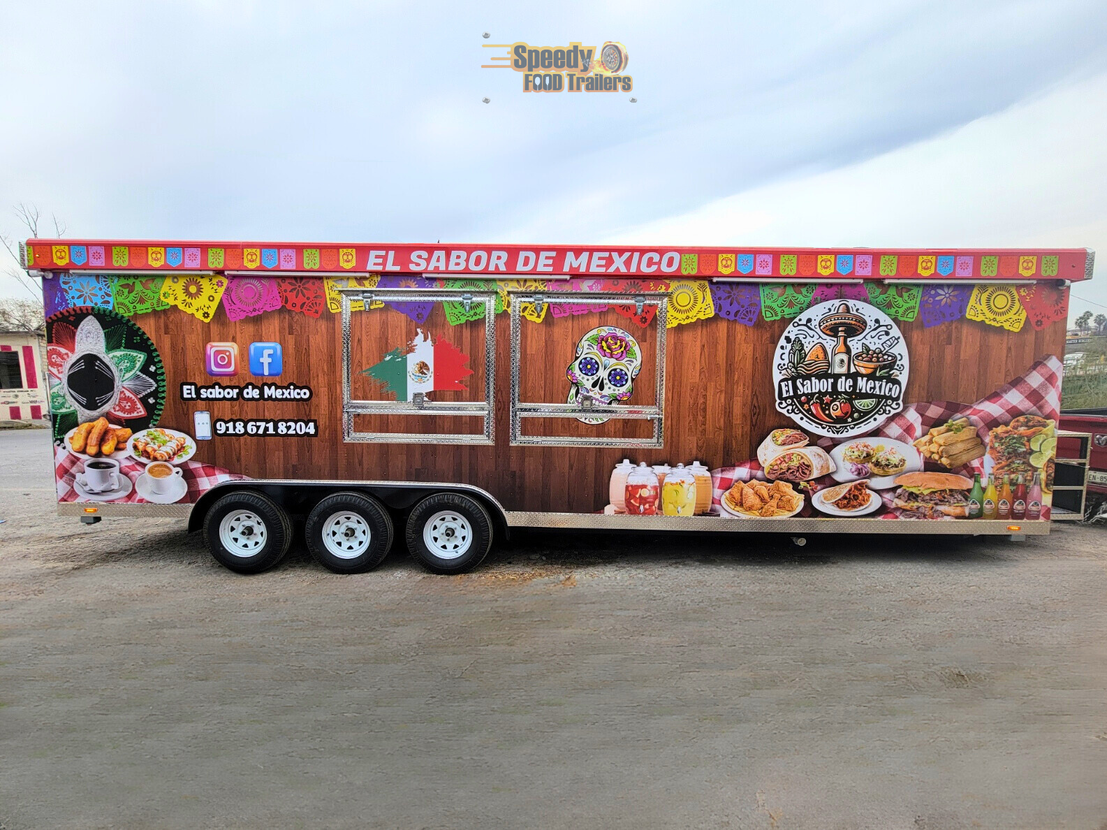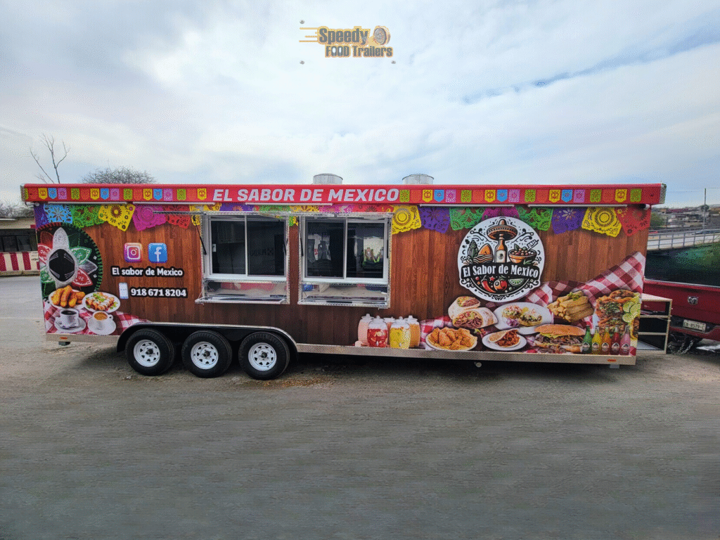 In Oklahoma, EL SABOR DE MEXICO operates from an 8 x 28 ft trailer, designed to provide a spacious, functional, and efficient area for preparing, cooking, and serving food. This kitchen on wheels is perfect for events, fairs, and different locations, bringing authentic Mexican tacos and dishes full of flavor and tradition.