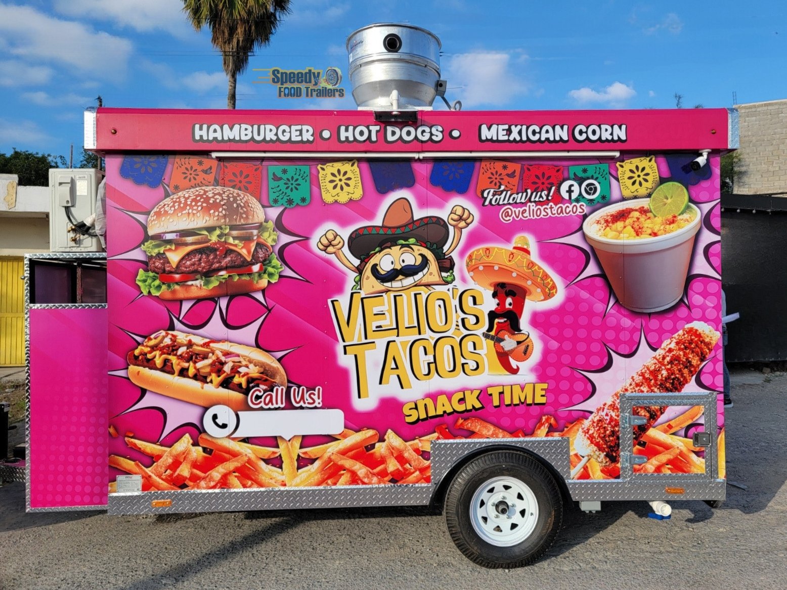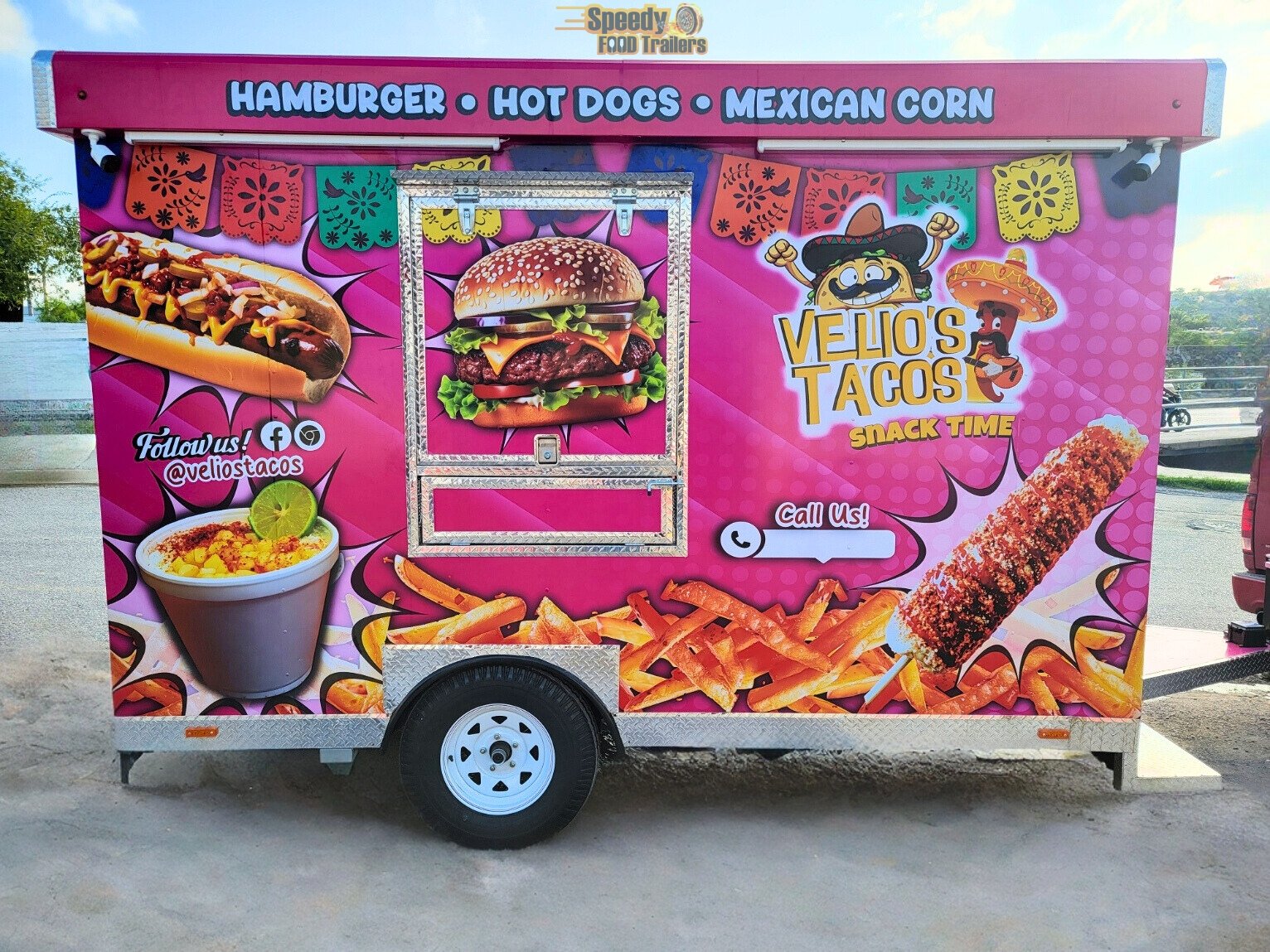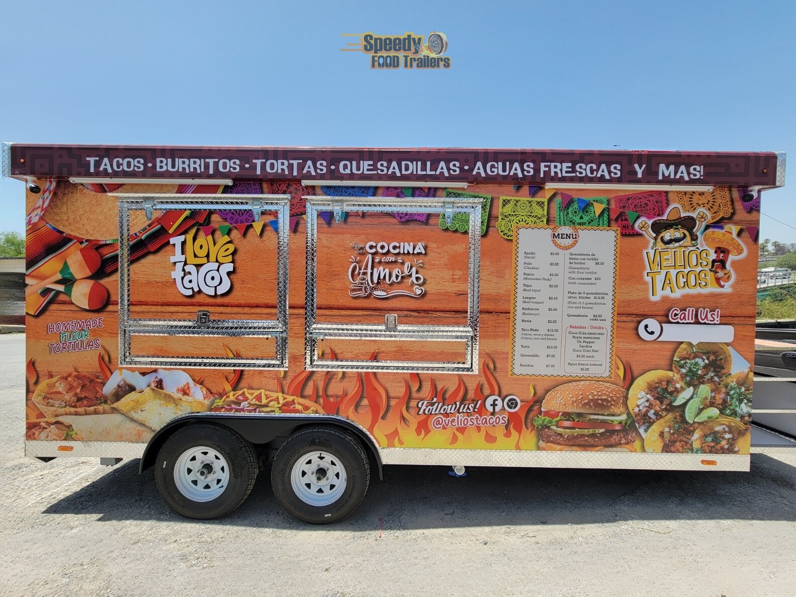 Mexican food reaches every corner of Oklahoma! The 8 x 12 ft trailer of VELIO’S TACOS SNACK TIME is customized, fully equipped, and ready to operate, bringing delicious tacos and snacks directly to customers.